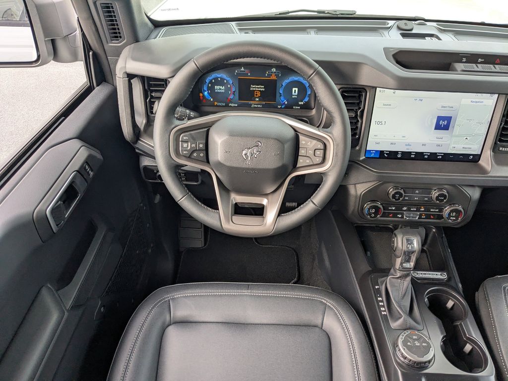 The installed navigation system will keep you on the right path. Apple CarPlay: Seamless smartphone integration for this Ford Bronco - stay connected and entertained on the go! This model warns of approaching vehicles with Cross-Traffic Alert. This 1/2 ton suv keeps you comfortable with Auto Climate. Never get into a cold vehicle again with the remote start feature on it. Heated seats for those cold winter days are included in it. Protect this 1/2 ton suv from unwanted accidents with a cutting edge backup camera system. An off-road package is equipped on this vehicle. The state of the art park assist system will guide you easily into any spot. This vehicle features a hands-free Bluetooth phone system. The Ford Bronco offers Android Auto for seamless smartphone integration. When you encounter slick or muddy roads, you can engage the four wheel drive on this vehicle and drive with confidence. This 1/2 ton suv projects refinement with a racy metallic gray exterior.