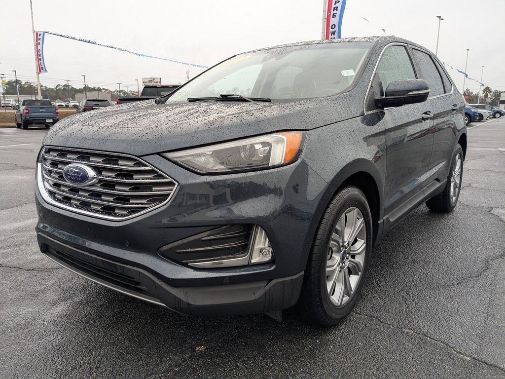 2022 Ford Edge Titanium AWD â" Low Miles, Best Price in Waycross, GA Looking for a premium midsize SUV with top safety and comfort features? This 2022 Ford Edge Titanium in Waycross, GA delivers style, capability and value. Powered by a fuel-efficient 2.0L 4-cylinder gasoline engine and equipped with AWD, it balances confident handling and comfortable highway cruising with just 41,739 miles on the odometer. Key features: Remote start for easy climate control, heated steering wheel for chilly mornings, rear parking sensors for safer reversing, Android Auto for seamless smartphone integration, and hands-free Bluetooth for convenient calling and audio streaming. The Titanium trim adds upscale touches and driver-assist tech for a refined driving experience. This Ford Edge is priced competitively â" the best price in Waycross â" offering exceptional value for buyers seeking an upscale SUV without the new-car premium. Well-maintained and ready for immediate delivery, it's ideal for families, commuters, or anyone who wants a versatile vehicle with modern connectivity and comfort. Schedule a test drive in Waycross, GA to experience the smooth AWD performance, thoughtful conveniences, and upscale interior for yourself. With low miles and top features, this 2022 Ford Edge Titanium won't last long at this price. Contact us today to reserve it.