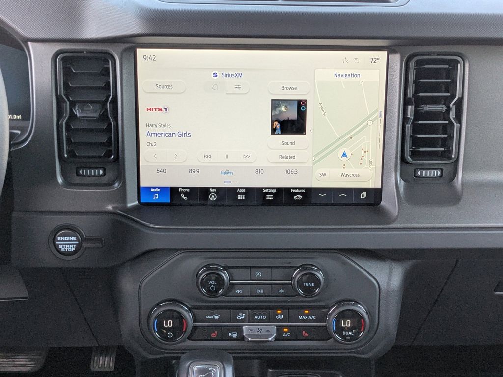 The Ford Bronco features a hands-free Bluetooth phone system. Protect this model from unwanted accidents with a cutting edge backup camera system. Enjoy the heated seats in this 1/2 ton suv you will never buy a vehicle without them. Everyone loves the comfort of having a warm seat on those cold winter days. Start this model from inside with remote start. This model's Cross-Traffic Alert: Safeguarding you from unexpected traffic when reversing. The Ford Bronco offers Automatic Climate Control for personalized comfort. The rear parking assist technology on this unit will put you at ease when reversing. The system alerts you as you get closer to an obstruction. You'll never again be lost in a crowded city or a country region with the navigation system on this vehicle. An off-road package is equipped on this 2025 Ford Bronco . This model offers Apple CarPlay for seamless connectivity. Good News! This certified CARFAX 1-owner vehicle has only had one owner before you.